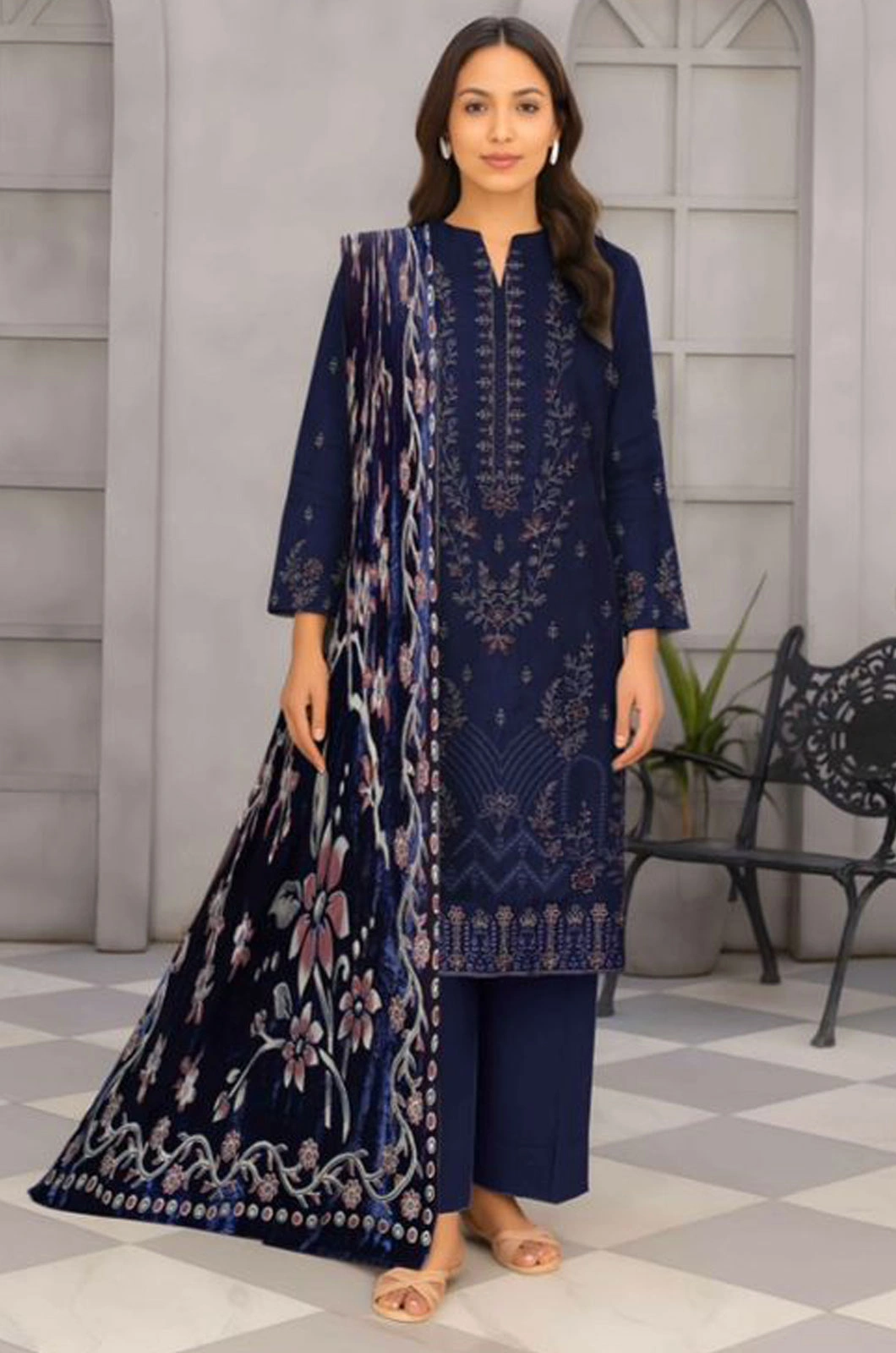 • Premium Luxury Palachi Shawl With Dyed Trouser